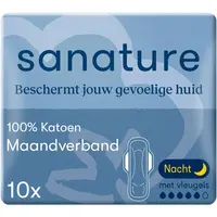 Voor jouw meest gevoelige huid wil je uitsluitend producten gebruiken die uit puur natuurlijke materialen bestaan. Het maandverband Ultra Night van Sanature is gemaakt van 100% katoen, dit laat de huid ademen, broeit niet en voorkomt eventuele huidirritatie zoals bultjes of roodheid. Sanature is het zachtste wat je de intieme huid kunt bieden. Het 100% katoenen maandverband Ultra Night van Sanature is te gebruiken bij een zwaardere vloed en voor de nacht. Heeft een 100% katoenen kern en toplaag Ademt beter en voorkomt allergische reacties van de huid Heeft een katoenen HyDri filter voor een extra droog gevoel en meer comfort Bevat geen bleekmiddel, parfum of chemische absorberende korrels Met vleugels en extra lang voor meer comfort en bescherming Dat maakt ons een van de weinige dameshygiëne merken die bij het ontwikkelen van de buiten- en binnenkant van onze producten, ook aan jouw buiten- en binnenkant hebben gedacht. Leek ons wel logisch. En prettig voor jou. Zo voorkom jij, met onze natuurlijke producten, irritatie. 100% katoen beschermt jouw gevoelige huid.