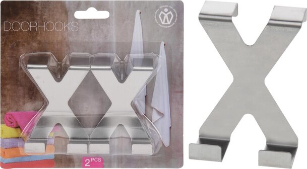 Kledinghaak - Deze handige deurhaken zijn ideaal in de slaapkamer voor het ophangen van bijvoorbeeld een badjas of colbert. Ook kun je de haken goed in de badkamer gebruiken voor handdoeken. Je hangt de haken over de bovenrand van de deur, waarna je de deur nog gewoon kunt sluiten. Deze exemplaren worden per twee stuks geleverd.Ideale ophanghaken voor kledingDeze deurhaken zijn gemaakt van roestvast staal en bevatten elk twee haakjes. Hierdoor kun je eenvoudig meerdere kledingstukken of handdoeken naast elkaar ophangen. De deurhaken zijn eenvoudig in gebruik en kun je bovendien gemakkelijk verplaatsen. De haken hebben een afmeting van 5 x 7 x 3 centimeterEigenschappen: Deurhaak Gemaakt van roestvast staal Afmeting: 5 x 7 x 3 centimeter 2 stuks