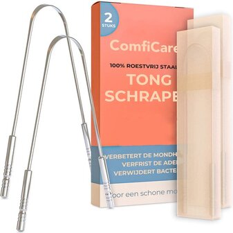 RVS tongschrapers zijn superieur aan plastic alternatieven. De tongschraper van ComfiCare® is gemaakt van hoogwaardig 301 Roestvrij staal en is uitermate geschikt voor het goed schoonmaken van de tong. Onze tongschrapers zijn ontworpen met twee handgrepen voor ultieme kracht, flexibiliteit en effectiviteit. Ze stellen je in staat om je tongreinigingsroutine te optimaliseren met één eenvoudige beweging. Door dagelijks een rvs tongschraper te gebruiken, kun je profiteren van een schone mond en genieten van een frisse adem. Gebruik je nieuwe tongschrapers dagelijks met snelheid en gemak. Ontdek het verschil met onze hoogwaardige tongschrapers!