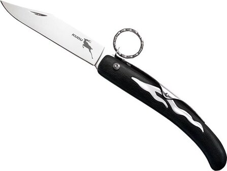 De CS 20KK, ook wel de Cold Steel Kudu is gemaakt van 5Cr15MoV Roestvrij staal. Het handvat is kunststof en het mes heeft een unieke hefboom vergrendeling die met twee handen bediend moet worden. D.m.v. trekken aan de ring wordt het mes ontgrendeld via een soort ratelsysteem. Kenmerken: * Ontwerper: Cold Steel * Kleur: Zwart * Staalsoort: RVS * Hardheid staal: 50 HRC * Vergrendeling: Hefboom * Materiaal handgreep: Kunststof * Lengte lemmet: 11.5 cm * Lengte handgreep: 13.5 cm * Lengte totaal: 25 cm * Gewicht: 75 gram
