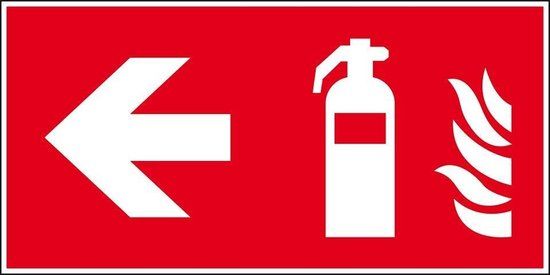 Dit bord laat door middel van het brandblusser symbool en een pijl naar links zien waar de brandblusser zich bevindt. Zo kan iedereen in een noodsituatie duidelijk zien waar deze te vinden is, zodat de brand snel kan worden geblust.