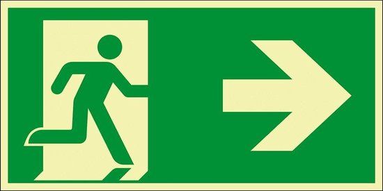 Om aan te geven dat je de pijl moet volgen om de nooduitgang te vinden