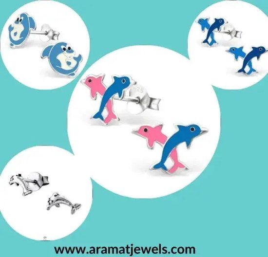Aramat jewels ® - 925 Sterling Zilveren Oorstekers Dolfijn Blauw - Kinderen - Oorbellen