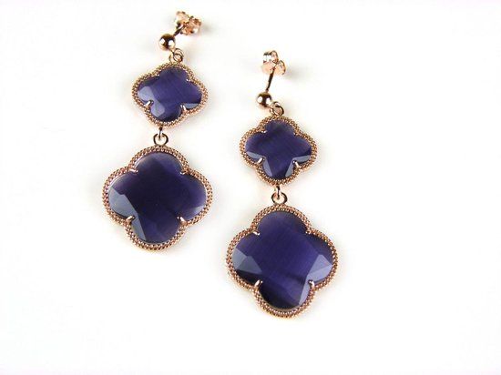 oorringen in zilver roze verguld paarse klavers model Double Fiori groot lengte oorringen = 5 cm grootte bloemen = 1,5 cm en 2 cm