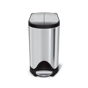 Perfect for bathrooms, our smallest butterfly step can has an innovative butterfly lid design that opens from the center for low lid clearance. The slim, space-efficient shape is ideal for tight spaces. The strong steel pedal and patented lid shox technology ensure the can will function smoothly and quietly for years. \n\nbutterfly lid\nSplit doors open from the center for maximum clearance under low countertops.\n\nstrong steel pedal\nOur strong steel pedal is engineered to last over 150,000 steps — that's more than 20 steps a day for 20 years.\n\nsilent close lid\nOur patented lid shox technology controls the motion of the lid for a slow, silent close. (available for 10L models)\n\nfingerprint-proof\nFingerprint-proof finish resists smudges to keep stainless steel shiny.\n\ncustom fit liners\nOur custom fit liners are designed to fit this can perfectly so there is no messy bag overhang or bunching – and they never slip. Extra-thick plastic and double-seam construction prevent rips and tears.