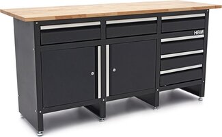 Merkloos / Sans marque HBM 171 cm Werkbank met 6 Laden 2 Deuren en Massief Houten Werkblad - Opbergbanken met laden