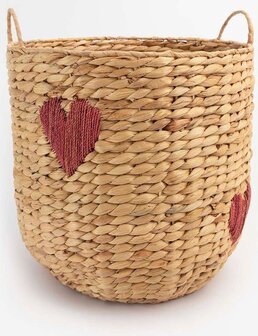 Hoe leuk zijn deze nieuwe manden van Sissy-Boy! Deze prachtige opbergmand is gemaakt van hyacinth en is versierd met rode ingeweven hartjes, wat dit item net even wat extra's geeft. Perfect voor volwassenen die hun interieur willen opfleuren met een unieke touch. Met een medium formaat en afmetingen van 35x25x35 cm, biedt deze mand voldoende ruimte voor al je opbergbehoeften.