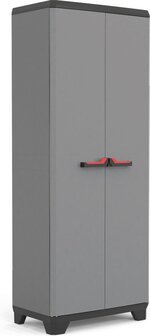 De Keter Stilo Hoge kast heeft een moderne uitstraling met de rode en zwarte accenten is Stilo een opbergmeubel dat ook in het oog springt. De hoge kast heeft 3 verstelbare legplanken met een capaciteit van 15 kg per stuk. Stilo heeft ook afsluitbare deuren en soft-touch handgrepen.