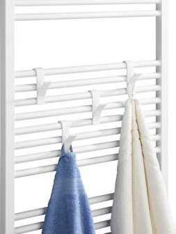 Deze set van 6 ophanghaken zijn ideaal voor over een (handdoek)radiator of wandrek, om zodoende uw handdoeken of kledingstukken op te hangen. De haken zijn aan beide zijden functioneel - aan de zijkant van het afgeronde uiteinde worden ze gebruikt voor bevestiging aan de grille of ribben van de radiator en op het rechte stuk om de handdoek op te hangen. Bij paneelradiatoren kunnen de haken gedraaid worden zodat ze voor ieder type radiator geschikt zijn.