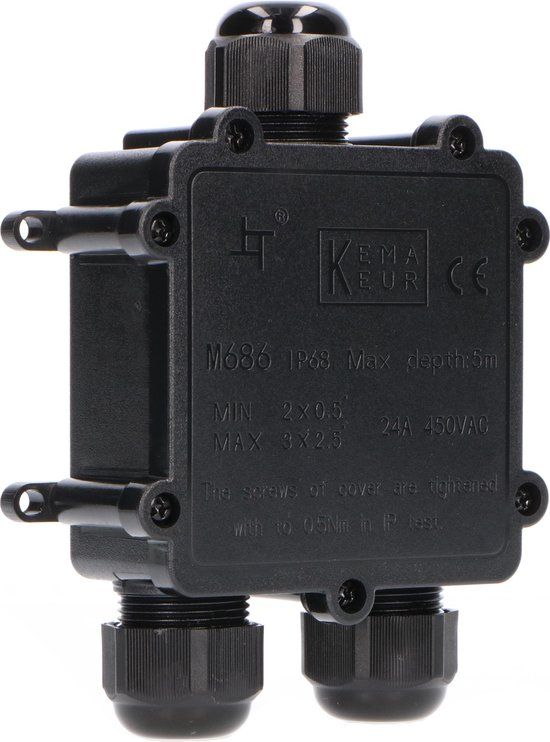 Bekijk productProventa T-Connection - Waterdichte kabeldoos - Lasdoos met wartel - IP68 - Zwart - Opbouwdozen