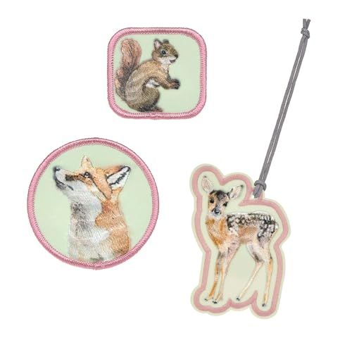 LÄSSIG Set van 3 hangers en patches - Forest - Eén maat - Opnaaibare lapjes