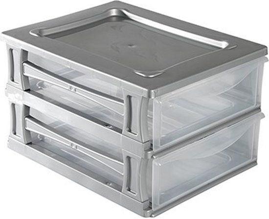 Hega Hogar Ladeblokje/bureau organizer 2x lade - grijs/transparant - L26 x B35 x H20 cm - kunststof - Opslagdispensers