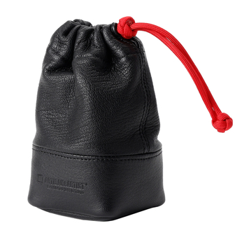 \\nDeze pouch is vervaardigd uit geitenleer, geitenleer is soepel, compact, duurzaam en bestand tegen vervorming, waardoor het een uitstekend materiaal is voor deze pouches. De unieke korreltextuur voegt een aantrekkelijk visueel element toe. Bovendien is het Artisan & Artist merknaam in reliëf aangebracht aan de onderkant van de pouch, waardoor een luxueuze uitstraling ontstaat. Celtische Knoopdetails \\nDe trekkoorden, vervaardigd met paracord, hebben aan beide uiteinden Keltische knopen als stoppers en voor decoratieve doeleinden. Dit voegt een casual maar elegante touch toe aan de pouches. Praktisch Ontwerp \\nDankzij de vierkante vorm van de onderkant is de pouch eenvoudig naast andere items op te bergen. Zachte Bescherming \\nHet interieur is bekleed met zacht, suede-achtig polyesterweefsel om de lens te beschermen. Daarnaast is er een extra kussentje aan de onderkant van de pouch geplaatst om je waardevolle lenzen te beschermen. Modulaire Binnenkant \\nBinnenin de pouch