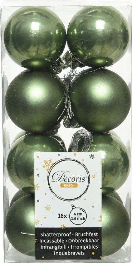 16x stuks kunststof kerstballen mos groen 4 cm glans/mat. Set van onbreekbare kerstballen in een mix van glanzende en matte kerstballen. Onze kerstballen worden standaard geleverd met ophangdraadjes maar wij adviseren u om onze kerstbalhaakjes mee te bestellen niet inbegrepen. Materiaal: kunststof/plastic. Formaat diameter: 4 cm. Kerstboomversiering.
