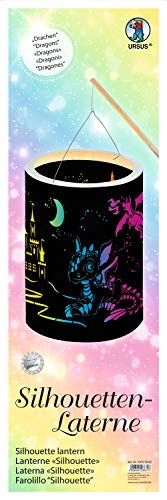Ursus 18750002 Silhouetten draak, knutselset met materiaal voor het knutselen van een lantaarn, diameter 15,3 cm, hoogte ca. 20 cm, inclusief LED-licht, kleurrijk - overig