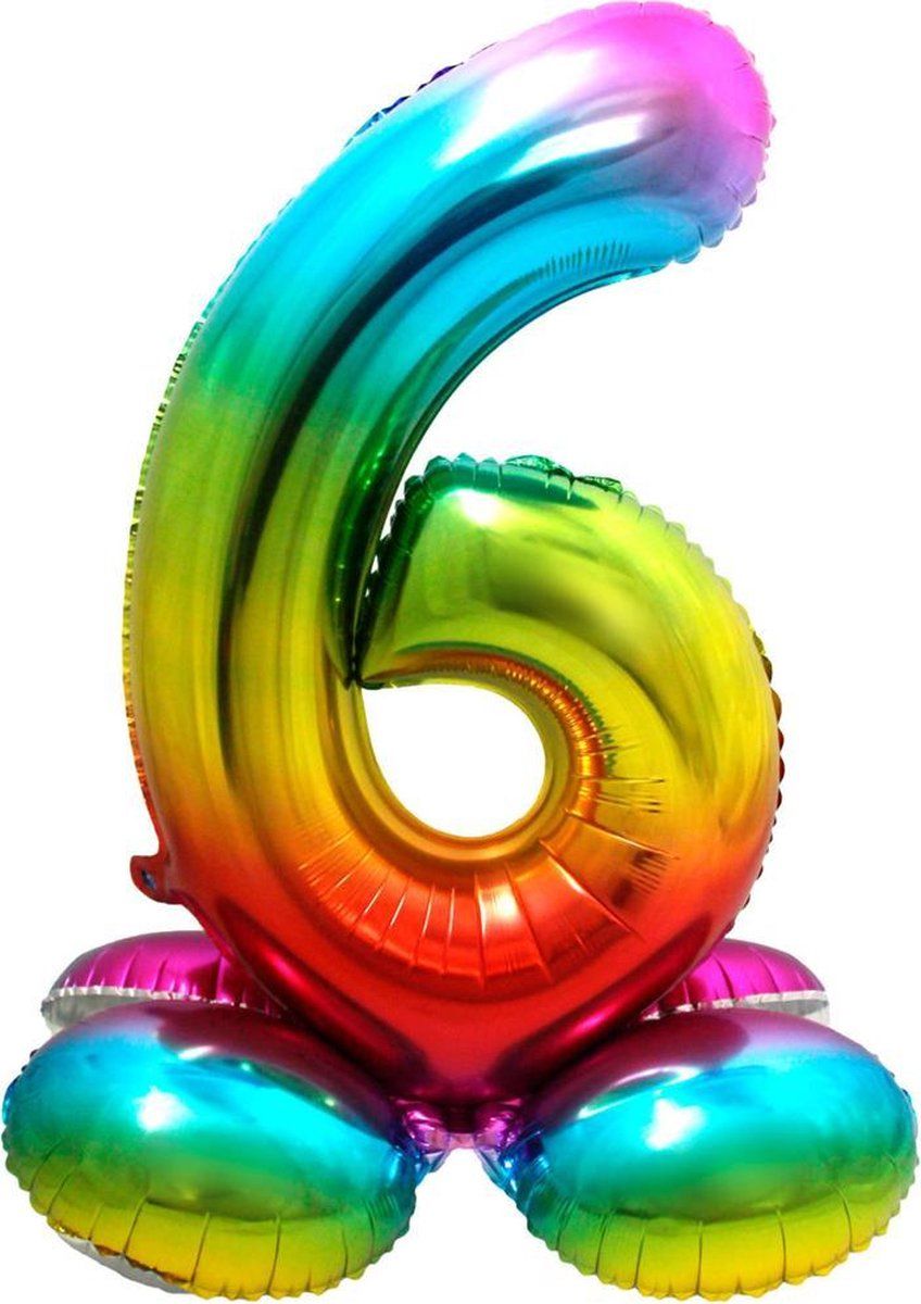 Folat Folieballon met Standaard 'Regenboog' - Cijfer 6