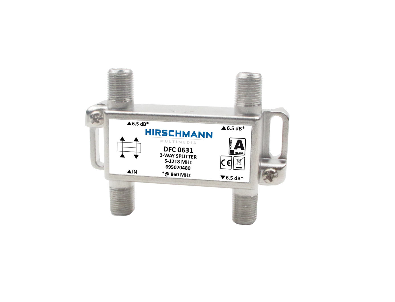 DFC 0631 is een drievoudige verdeler met 5,8dB demping. Deze verdeler heeft hoge isolatie tussen de uitgangen en zeer goede afscherming om de kwaliteit van het signaal te waarborgen en ongewenste 4G signalen buiten te houden. Onze splitters zijn uitgerust met een aansluiting om te aarden. Al onze taps (AFC, TFC en MFC) en verdelers (VFC, DFC) ondersteunen retourverkeer. De verdeelelementen uit de DFC serie zijn verkrijgbaar met verschillende dempingen en met verschillende aantal uitgangen. Ongebruikte uitgangen dienen afgesloten te worden met een afsluitweerstand van het type RFC 75. Alle splitters uit de DFC-serie zijn geschikt voor gebruik tot 1,2 GHz en daarmee voorbereid voor DOCSIS 3.1 techniek.