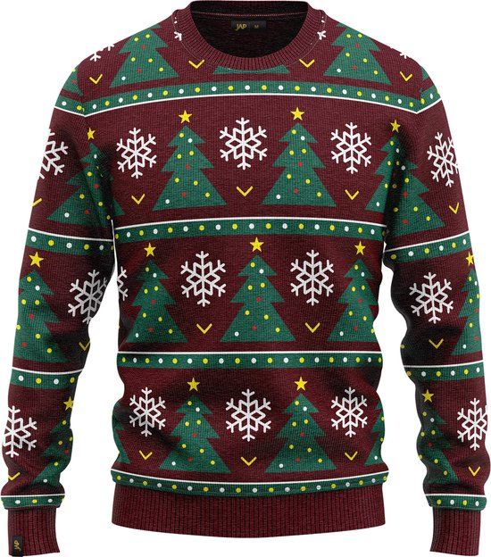 JAP Christmas Kersttrui (maat XL) - 100% Gerecycled - Kriebelt niet - Kerstcadeau volwassenen - Foute Kersttrui dames en heren - Kerstboom - Donker rood - overig