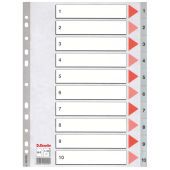Indexen met universele perforatie in grijs polypropyleen; 115 micron en voorbedrukte tabs. Stevig kartonnen voorblad (130 g) met bedrukking. Perforatiegaten versterkt met transparante polyesterfolie.
