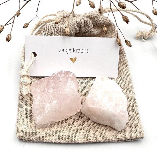Het zakje kracht bevat de Rozenkwarts en een omschrijving van de werking van deze edelsteen. De Rozenkwarts staat symbool voor kracht en liefde voor jezelf.