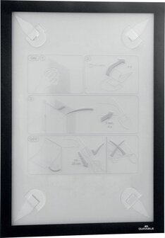 Informatiekader met zelfklevende strips voor gevoelige oppervlakken. Professioneel documenten presenteren. Het verwijderbare informatiekader DURAFRAME® WALLPAPER is ideaal voor het ophangen van A4 documenten aan behang, hout en kunststof oppervlakken.\nInformatie op een hoogwaardige en professionele manier presenteren\nSnel vervangen van documenten dankzij de magnetische rand\nOm te bevestigen aan behangpapier, hout en de meeste kunststoffen door middel van zelfklevende strips*\nTe verwijderen door de kleefstrip los te trekken: het uitrekken zorgt ervoor dat de lijm zich van het oppervlak losmaakt zonder lijmresten achter te laten of het oppervlak te beschadigen.\nToepassingsgebieden: voor signalisatie en andere informatie\nInclusief vervangset met 4 zelfklevende strips\nKan gebruikt worden in staand en liggend formaat\nBuitenafmetingen: 322 x 236 mm * Het oppervlak waarop wordt bevestigd moet voldoende stevig, vlak, schoon, droog en volledig vetvrij zijn.