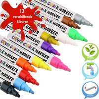 Deze krijtstiften zijn voorzien van een beitel en kogel punt die je zelf kunt omdraaien. Hierdoor kunt u andere letters/tekeningen maken en extra creatief zijn. De hoge kwaliteit stiftpunt zorgt voor een gelijknamige kleur afgaven en een vloeiende kleur overbrenging. De stiften zijn voorzien van 12 felle neon kleuren die gemakkelijk weg te vegen zijn met een natte doek. Dankzij de waterbasis van de stift is het niet giftig en dus al te gebruiken voor kinderen vanaf 3 jaar.
