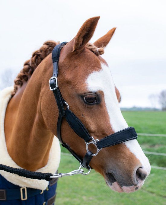 Luxe combi halster van leder en velvet versiert
