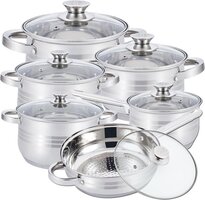 Merkloos Pannenset - 12-Delig - RVS - Geschikt voor Inductie en Gas - Vaatwasser Bestendig - Met Glazen Deksel - Pannensets