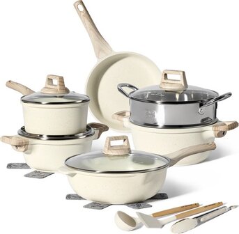 JUST PERFECTO HOUSEHOLD APPLIANCES 15-Delige Pannenset Inductie - Beige - PFAS vrij - Koudgrepen - Pannensets
