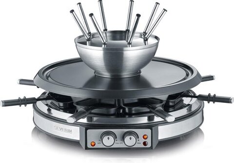 Severin RG 2348 Raclette-Fondue Combi - 8 Personen - 1900W - Zwart/RVS - Pannensets