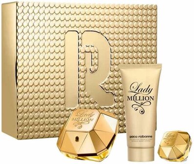 De Lady Million Giftset is een luxueuze set voor vrouwen die bestaat uit een 80 ml eau de parfum, een 100 ml bodylotion, en een 5 ml miniatuur. Deze set biedt een complete geur- en verzorgingservaring, perfect voor vrouwen die houden van een rijke en verleidelijke geur.
