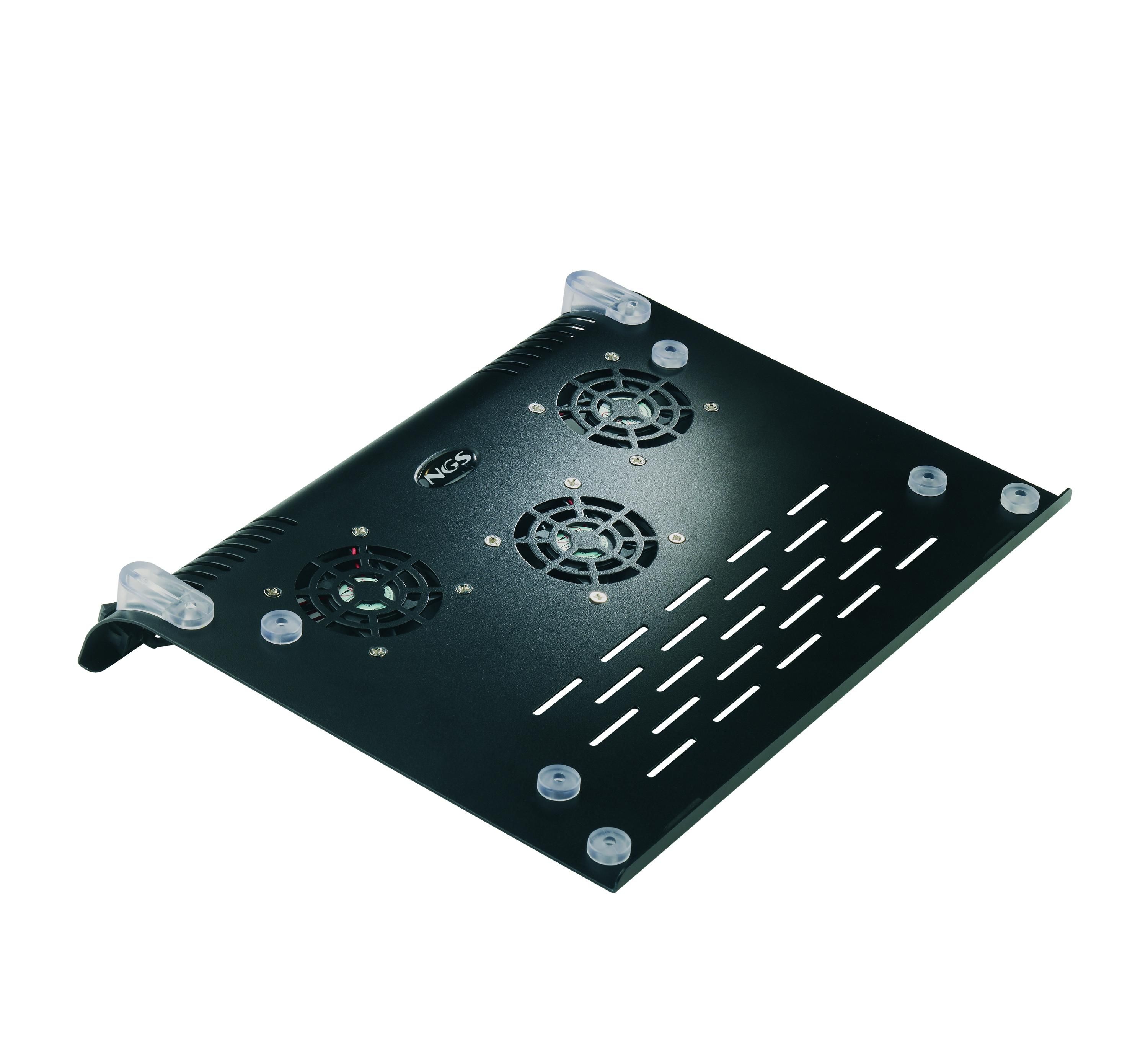 Notebook base made of metal and easy to carry. It also includes 3 cooling fans and a power on/off button. USB connection\n\nTechnical features\n- 3 cooling fans.\n- Metal Case.\n- Easy to Carry.\n- USB Connection.\n- On/Off power button.\n- Compatible with any laptop.\n\n\n