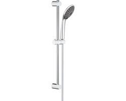 Met glijstang voor de perfecte luxe douche\n\nAls het idee van een warme zomerse regenbui je aanspreekt dan is de Rain straal van deze handdouche jouw dagelijkse vriend. Wil je tegelijk op je waterverbruik besparen, schakel dan over naar de SmartRain straal door de SprayDimmer te gebruiken. Door DreamSpray weet je zeker dat het water gelijkmatig over alle sproeigaatjes wordt verdeeld. Deze set wordt geleverd inclusief het GROHE QuickFix systeem, waarmee je de 600mm glijstang in een oogwenk kunt installeren. De douche is voorzien van SpeedClean zodat je weinig last van kalk zult hebben en is de chromen GROHE StarLight beschermlaag niet alleen mooi om te zien maar ook heel makkelijk schoon te maken. Deze set omvat ook onze TwistFree doucheslang die met elke beweging meedraait en nooit in de knoop raakt. Dit is de perfecte set voor jou.