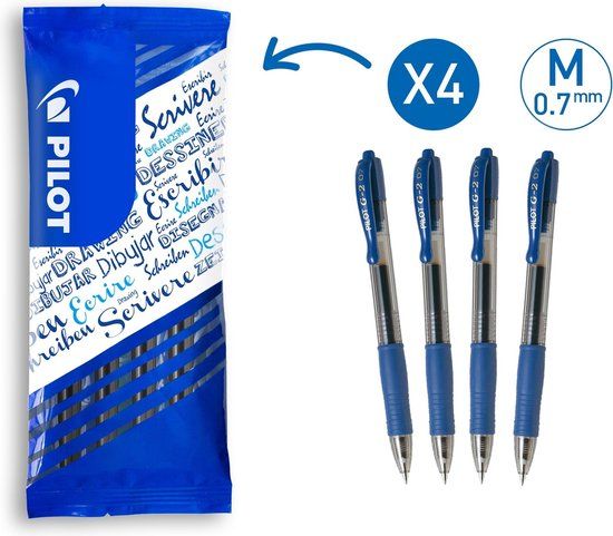 De Pilot Frixion G-2 is een gelinktpen die technologische prestaties en design combineert en de pen schrijft heerlijk met een medium punt van 0,7mm. De ergonomische rubberen grip maakt het heel gemakkelijk vast te houden voor beter schrijfcomfort. De pen is voorzien van een klikmechanisme om de pen aan te zetten. Het product is bovendien zuinig en milieuvriendelijk omdat de pen hervulbaar is. Deze set bevat 4 blauwe pennen.