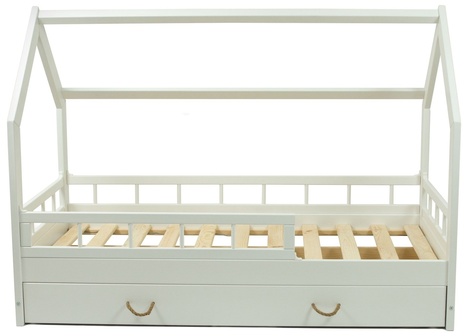 Op zoek naar een leuk en functioneel bed voor je kind? Overweeg de Viking Choice Huisbed. Dit is een knus bed, met afmetingen van 80x160 cm, waarbij de lattenbodem de juiste ondersteuning biedt voor een heerlijke nachtrust. Kenmerkend zijn de fraaie witte kleur en het huisvormige frame, wat zorgt voor een speels en gezellig uiterlijk. Het bed is meer dan alleen een slaapplaats; het is ook een ruimte waar je kind zich even kan terugtrekken in een veilige omgeving. Een pluspunt is de handige bedlade die onder het bed is geïntegreerd. Deze biedt extra opbergruimte, ideaal voor het bewaren van speelgoed, beddengoed of kleding. Strak vormgegeven en degelijk gebouwd, biedt het Viking Choice Huisbed een lichte en luchtige toevoeging aan elk kinderkamerinterieur.