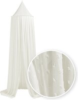 Deze prachtige klamboe Plume brengt een chique, klassieke sfeer in de slaapkamer van je kind. Dankzij de subtiele, geborduurde stipjes creëert de klamboe een elegant, sfeervol accent boven het bed. De klamboe is niet alleen mooi, maar biedt ook een extra geborgen gevoel voor je kindje. De klamboe staat niet alleen prachtig bij een wiegje of ledikant, maar ook een peuterbed, juniorbed of eenpersoonsbed wordt in één klap betoverend mooi dankzij deze klamboe. De klamboe wordt geleverd zonder piekstok.