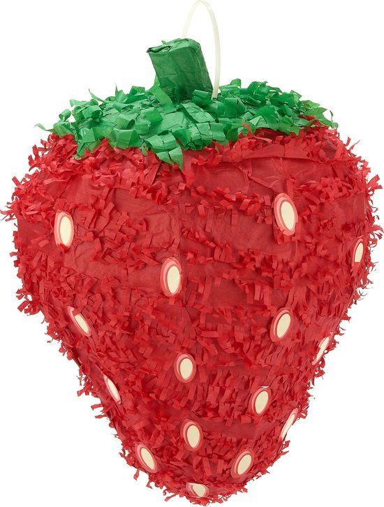 "Aardbei Pinata - Deze aardbei pinata heeft een maat van 46 cm bij 41 cm. Leuk voor een speurtocht op een kinder feestje of verjaardag. Unique party branding"