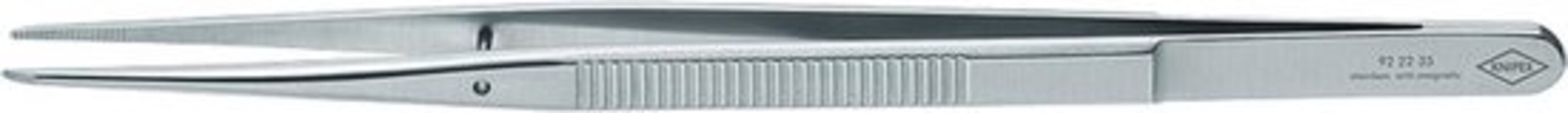 - universally applicable\n- narrow tips\n- gripping surfaces with fine transverse serration\n- serrated handles\nModel:\n- straight pattern\n- non-reflective matt finished\n- stainless, anti-magnetic and acid-proof