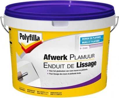 Polyfilla afwerkplamuur is de ideale structuurverf om gebreken en barsten in plafonds te corrigeren voor het egaliseren van gestructureerde wanden. Speciaal voor licht beschadigde, zuigende ondergronden. Compacte en zeer gladde structuur. Voor binnengebruik. Klaar voor gebruik.