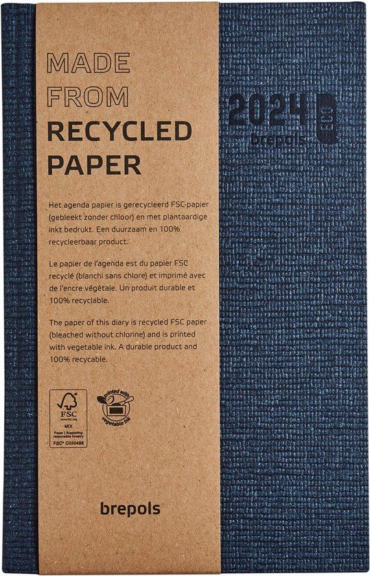 * Deze Brepols ECOday agenda is gedrukt op gerecycleerd FSC papier. Met een indeling van 1 dag per pagina, zie je in één oogopslag de afspraken en taken voor een hele dag. *Onderaan heb je extra ruimte voor je to-do’s per dag, zodat je nooit meer iets zal vergeten. *Deze compacte A5 planner laat je toe om per half uur te plannen, van 07:00 tot 22:00. *Voor zowel zakelijk gebruik als privédoeleinden. * Doordachte en functionele lay-out, voor een overzichtelijke planning. *halfuurindeling (07:00-22:00). *4-talig (NL-F-GB-D). *Weeknummering en maandoverzicht op iedere pagina. *384 pagina’s - inclusief internationale feestdagen, jaarplanningen (lopend & volgend jaar), extra notitie & ABC pagina’s. *Gedrukt met ecologische inkt (op basis van plantaardige en hernieuwbare bronnen) in een aangename groene kleur. 133x208mm. *Met garen genaaid en gebonden, oersterk bij intensief gebruik. *Omslag, FSC Kazar gekartonneerd met blinddruk, met eco..
