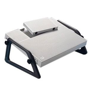 Deze voetensteun voldoet aan de DIN-norm 4556. Uitneembare inzet voor voetschakelaar en dicteerapparaat, met afdekplaat. Traploos in hoogte verstelbaar. Afmetingen l 450 x b 350 mm