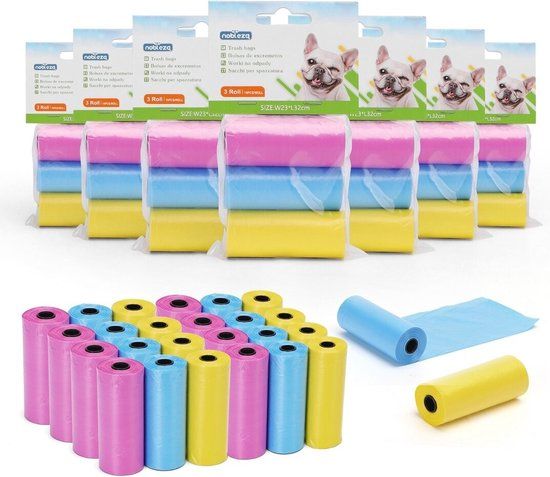 Nobleza Hondenpoepzakjes - 10 x 3 rollen - Blauw/Roze/Geel - Poepzakjes voor huisdieren