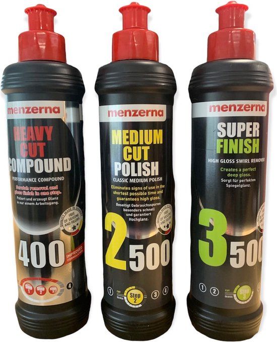 Met de Menzerna Heavy Cut 1000 haal je grovere lakdefecten en krassen uit de lak. Dit polijstmiddel gebruik je vaak op een harde heavy cut polijstpad. De Menzerna 400 is één van de top producten op het gebied van zware polijstmiddelen. Het corrigeert niet alleen erg goed, het geeft direct een een goede glans