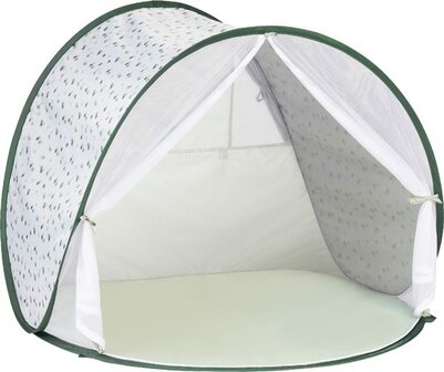 Deze tent zorgt ervoor dat 99% van de gevaarlijke UVA en UVB stralen wordt tegengehouden. Het tentje 'gooi' je gemakkelijk op door middel van een pop-up systeem en heb je dus zo opgezet. Met de drie meegeleverde pinnen zet je het vervolgens eenvoudig en stevig vast in het gras of zand.