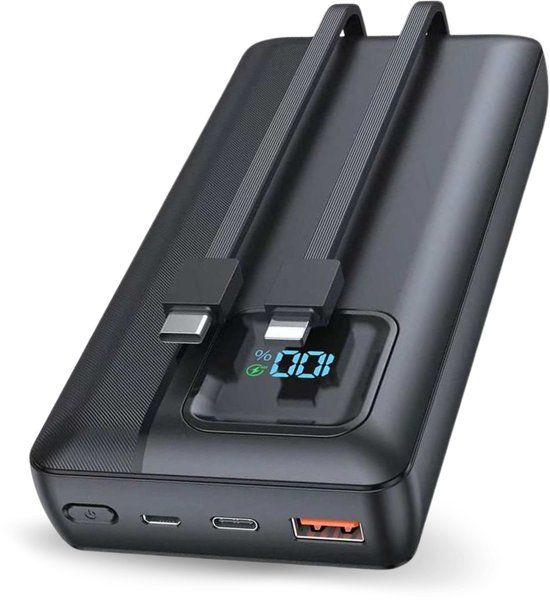 Let op: Deze powerbank heeft een hoge capaciteit en ondersteunt snel opladen met een hoog wattage. Hierdoor kan het opladen van de powerbank zelf meer tijd in beslag nemen, vooral bij gebruik van een standaardadapter. Voor optimale prestaties adviseren wij een krachtige adapter te gebruiken (bij voorkeur 18W of meer).