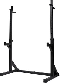 Het VirtuFit Verstelbaar Squatrek is gemakkelijk in elkaar te zetten, gemakkelijk te gebruiken en gemakkelijk op te bergen als je klaar bent. Dit squatrek is compact genoeg om thuis in een kleine fitness ruimte te passen en volledig verstelbaar om al je samengestelde oefeningen en je isolatie oefeningen uit te voeren. Het is ontzettend sterk en volledig veilig te gebruiken. Het rek is belastbaar tot 220 kg. De breedte van het squatrek is instelbaar van 72 tot 117 cm breed.br/br/Trainingsmogelijkheden br/br/Dit veelzijdige squatrek heeft aan beide zijden in hoogte verstelbare houders. De verstelbare halterhouders stel je in van 98 tot 158 cm hoog. Dit ondersteunt veel trainingsmogelijkheden zoals squats, shoulder press en shrugs. Combineer het rek met een halterstang, halterschijven en een trainingsbank om je eigen mini homegym compleet te maken. Met die set voer je de bekende drie grote samengestelde oefeningen uit: squat, deadlift en bench press. Train en oefen die bewegingen veel om je fitness niveau en kracht in korte tijd te verhogen.br/br/Extra opties van het verstelbaar squatrekbr/br/Onder de houders van het VirtuFit Verstelbaar Squatrek zitten safety spotters. Je kunt de halterstang veilig op de spotters laten vallen wanneer je de herhaling van een oefening niet meer kunt afmaken. Daarnaast kunnen de spotters je ondersteunen bij een squat. Zak je te ver door je benen, dan vangen de spotters de halterstang voor je op. br/br/Bovenaan de houders zitten dipsteunen. Gebruik die voor je chest dips en tricep dips. Ook belangrijke samengestelde oefeningen die je helpen om je niveau snel omhoog te krijgen.br/br/VirtuFit br/br/Het Nederlandse fitnessmerk VirtuFit staat garant voor uitstekende kwaliteit. De fitnessapparaten en fitnessartikelen zijn vervaardigd uit kwaliteitsmaterialen en daarnaast is er veel aandacht besteed aan gebruikersgemak, design en uitgebreide functionaliteiten.