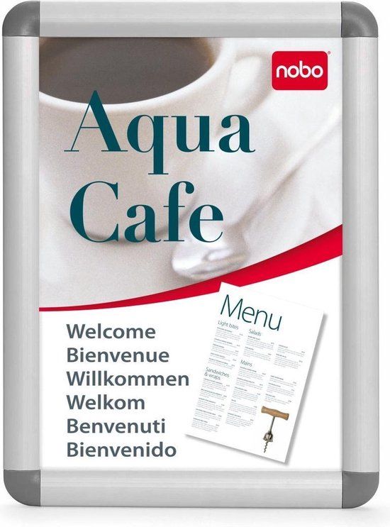 De weerbestendige Nobo Clicklijsten zijn geschikt voor binnen en buiten en bijzonder handig als u de informatie vaak wilt verwisselen. U hoeft de hoeken van de lijst slecht omhoog te duwen om een nieuwe notitie of poster aan te brengen. Of u nu kiest voor een wandmodel of een Stoepbord, er zijn extra accessoires verkrijgbaar om uw Stoepbord of Clicklijst naar wens aan te passen.\n\n- Geanodiseerde aluminium omlijstingen van topkwaliteit, verkrijgbaar in 2 breedtes: 32 mm (A2 en groter) en 25 mm (A4 en A3)\n- De anti-reflectie PVC folie beschermt de poster tegen stof, vuil en beschadigingen\n- De speciaal ontworpen hoeken openen naar buiten toe, waardoor het verwisselen van posters nog makkelijker wordt en vocht beter wordt afgevoerd\n- De extra afdichtstrip helpt om de poster tegen vocht te beschermen bij buitengebruik\n- Inclusief muurbevestigingsmateriaal