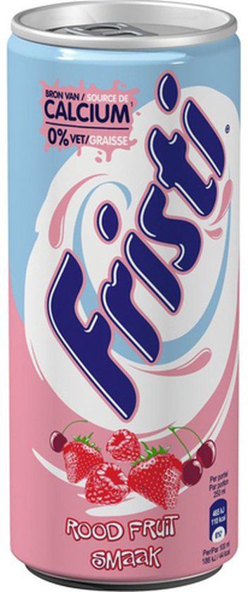 Fristi Rood Fruit smaakt naar heerlijk zoete aardbeien, frambozen en kersen. In Nederland is statiegeld ingevoerd op blikjes en flesjes voor water, frisdrank, bier en andere laag alcoholische dranken. U kunt de lege blikjes en flesjes enkel inleveren in Nederland.