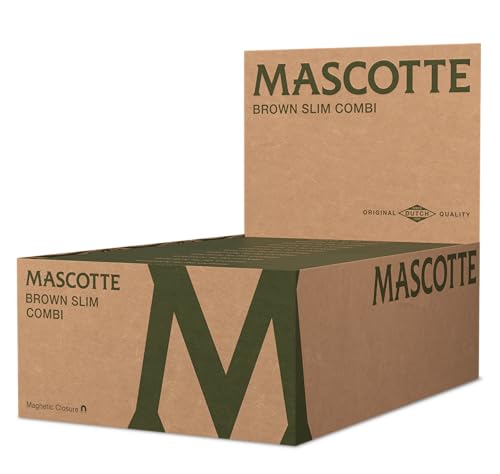 Mascotte® Brown Slim Combi 34 x 26 boekjes | Ongebleekte Lange Vloei met Tips | Smalle en Dunne Vloei met Magneetsluiting | 884 Vloeitjes en Tipjes - Overig