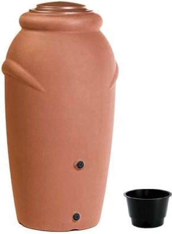 Mooie decoratieve kunststof regenton voor de opvang van regenwater. Deze ton heeft bovenin een opening met deksel van Ø 26 cm. Ze is gemaakt uit duurzaam kunststof en ziet er net uit als een grote stenen urne.